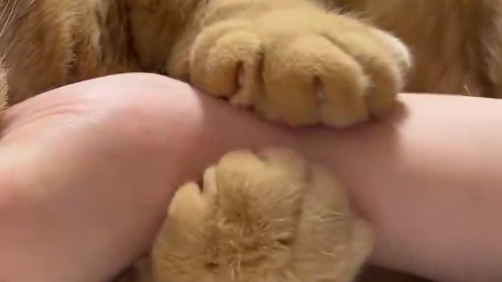 この甘え方、実は日常茶飯事なのだとか。「いつも私が横になってると隣に来てゴロゴロ喉を鳴らして甘えてくるのですが、ヒートアップしてくると手を噛みながら腕にしがみついてくるので、その時に撮った動画です」と飼い主さんが教えてくださいました。