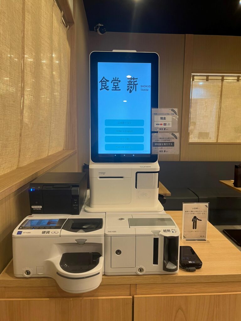 列の最後尾に並びましたが、1巡目で入店に成功。注文はお店入り口にある機械で行います。
