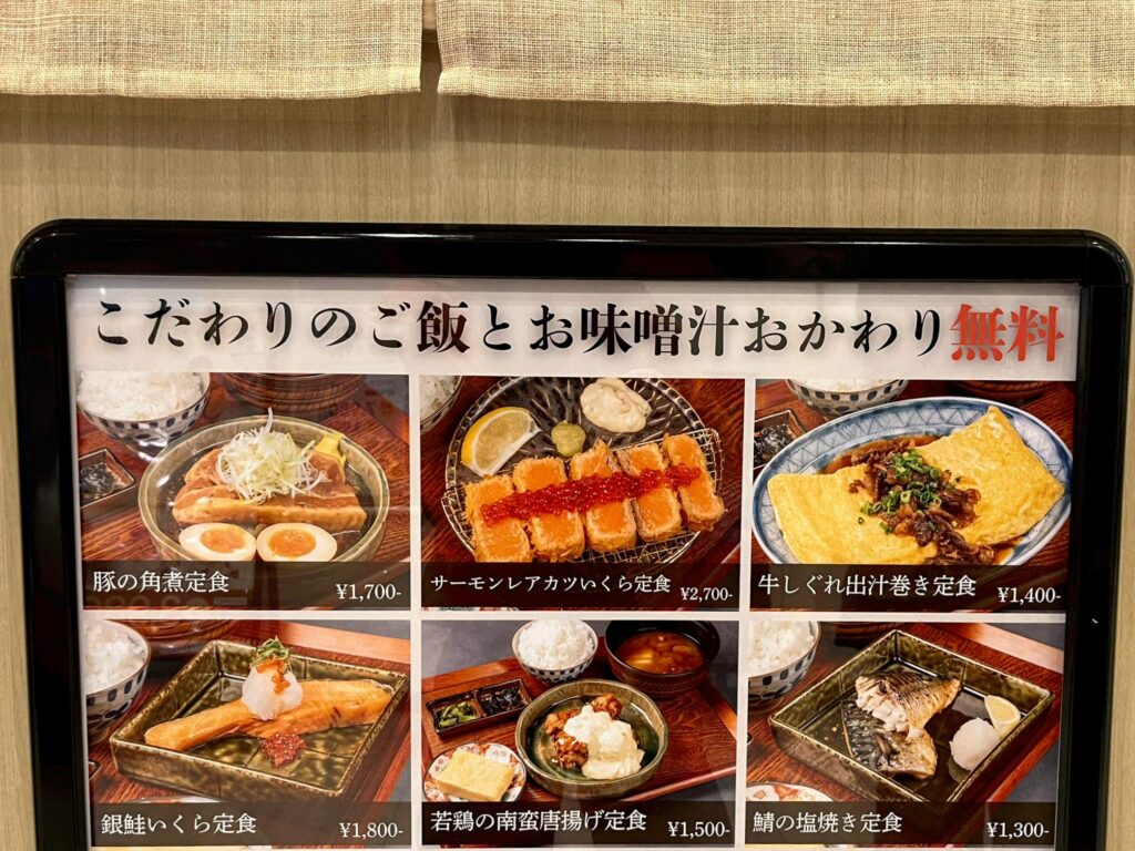 お店の前には、メニューの看板がありますが……