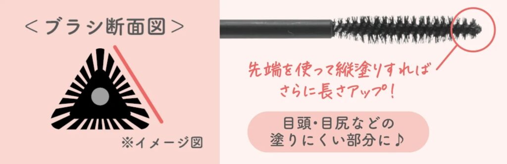 目のカーブに沿って塗りやすい「ムーンスリムブラシ」が採用されており、細かいまつげまでしっかりキャッチ。