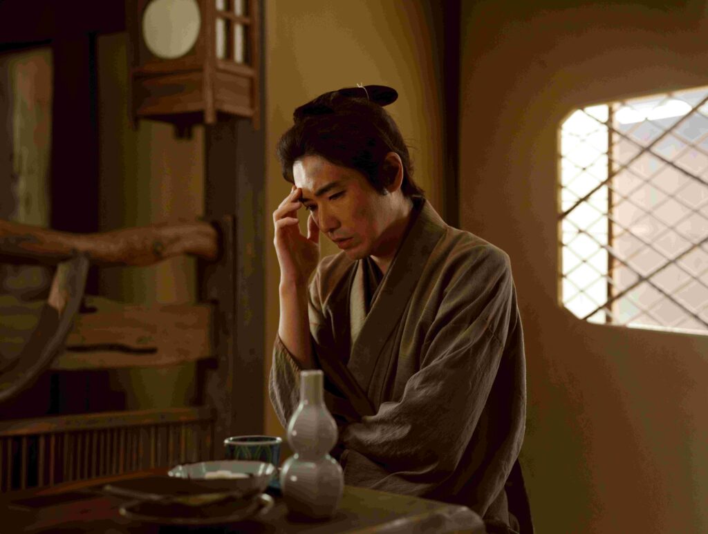 物語は一転し、どこか謎めいた主人公・加瀬総一郎(柄本佑)による謎解きへ。迎えるのは森田座の個性的な面々。客寄せを担当する木戸芸者、一八(瀬戸康史)、斬り合いなどの立廻りを振り付ける立師、相良与三郎(滝藤賢一)、元女形の衣装方、芳澤ほたる(高橋和也)、小道具方、久蔵(正名僕蔵) とその女房お与根(イモトアヤコ)。そして、森田座の座付作家にして、「あだ討ち」すべての謎に見え隠れする黒幕、篠田金治(渡辺謙)。