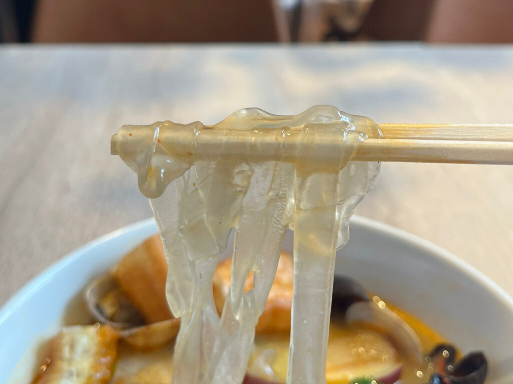 さつまいも麺はもっちりとろとろ。スープがよく絡んで、箸が止まりません。
