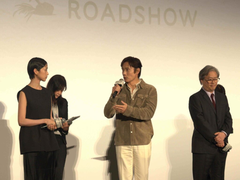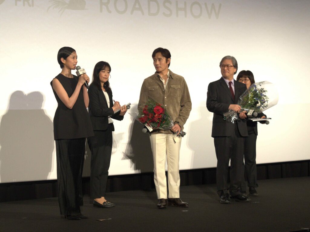 そして、ゲストの河合優実が登場し、花束を贈呈。「日本での公開おめでとうございます。パク・チャヌク監督、イ・ビョンホンさんの新作を待ち望んでいる映画ファンは本当にたくさんいるので、私がイチ映画ファンの代表として、お礼を伝えに来ました」と喜びを表現。