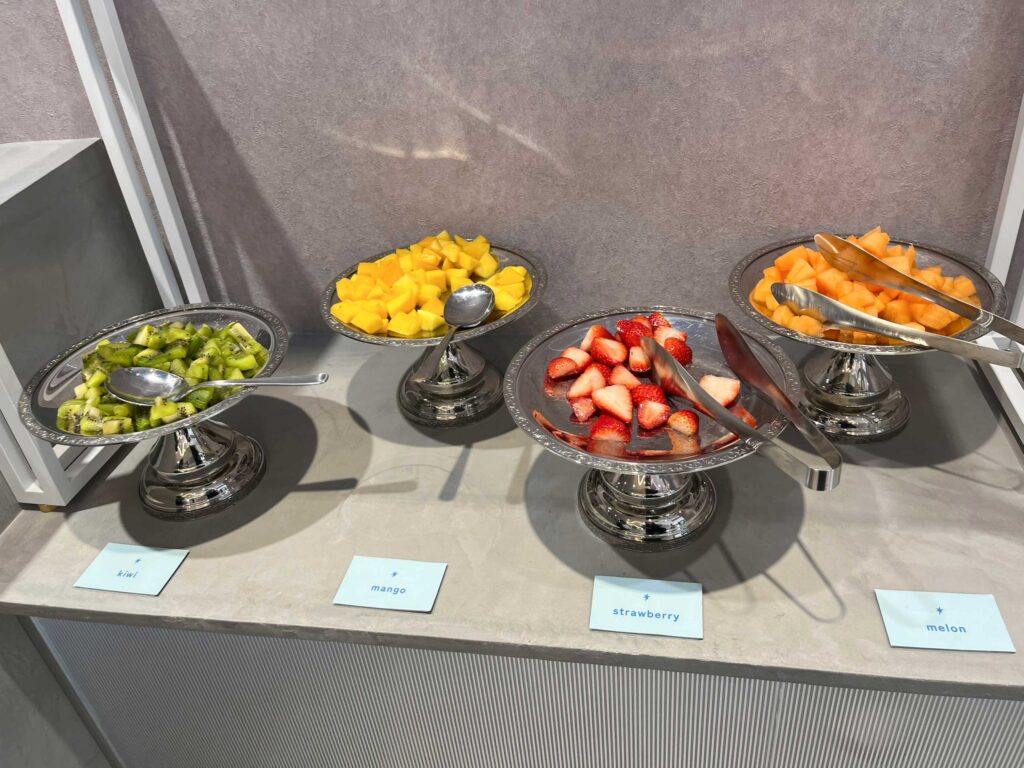 トッピングはフルーツや、グラノーラなどなど。最大で6種類まで選ぶことができます。トッピングによって値段が異なりますが、1種につきの価格なので、トレーの1ブロックに入る量ならたっぷり盛っても同じ値段なのだとか。