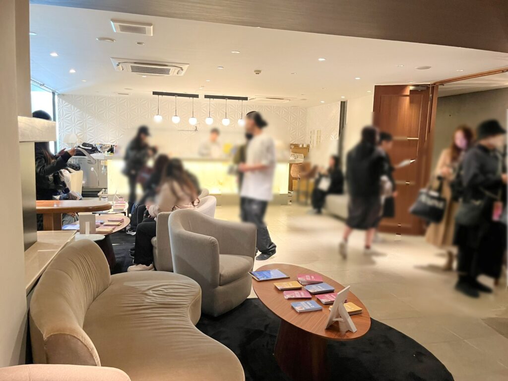 2階は広々とした空間。まずはスタッフさんにスタンプラリーのスタンプを書いてもらいます。