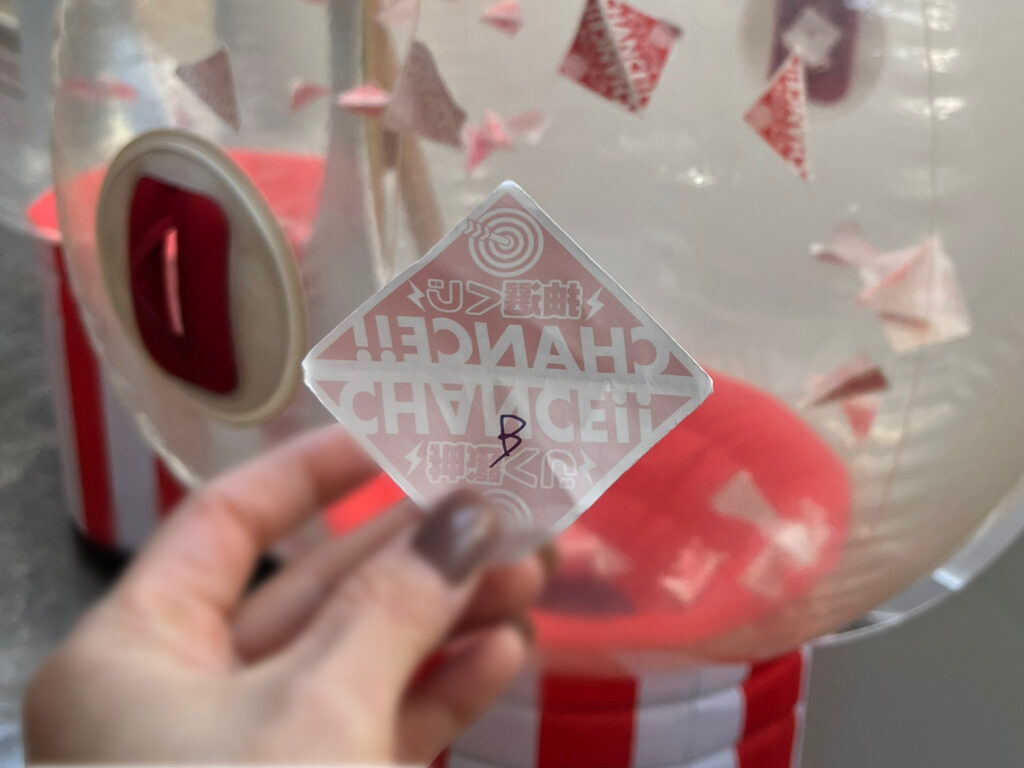 その棚の隣ではくじ引きに挑戦。飛び交うくじをパッと選んで取ります。