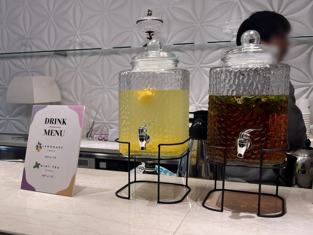 さらにドリンクのサービスも。待ったり歩いたりしたので、この心遣いに感動♪レモネード(HOT/ICE)、ミントティー(HOT/ICE)から選べます。