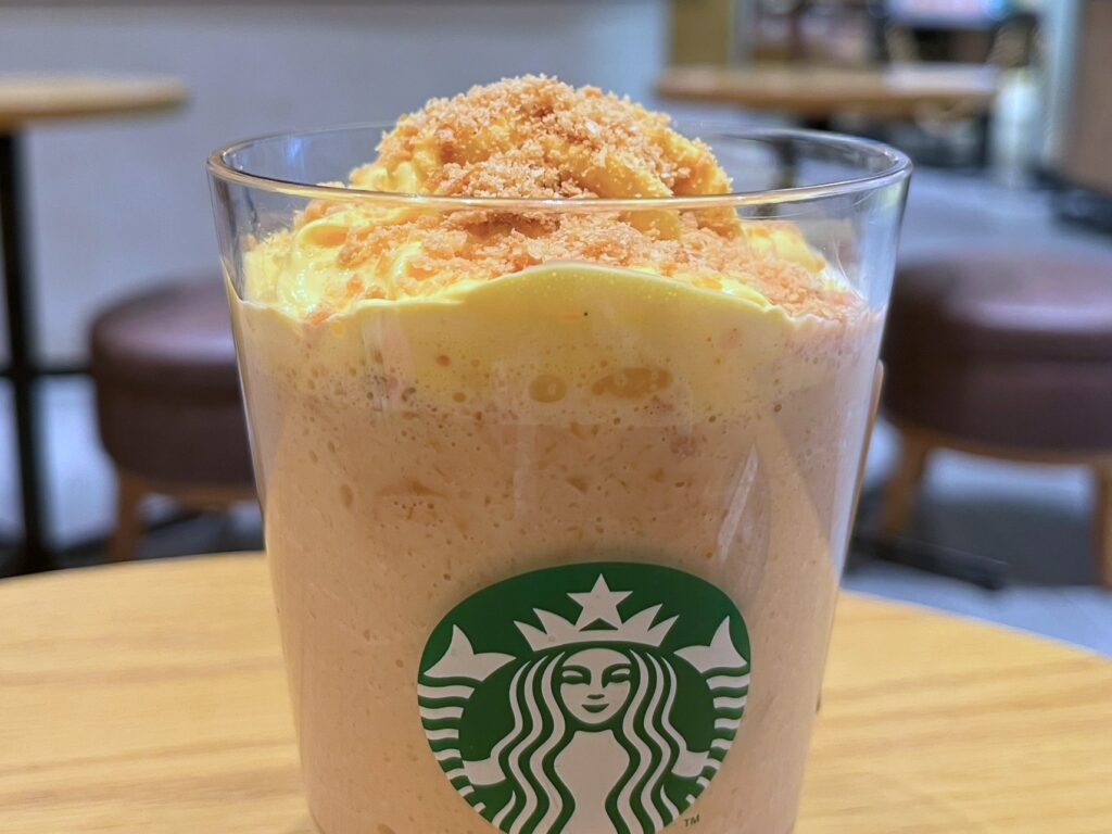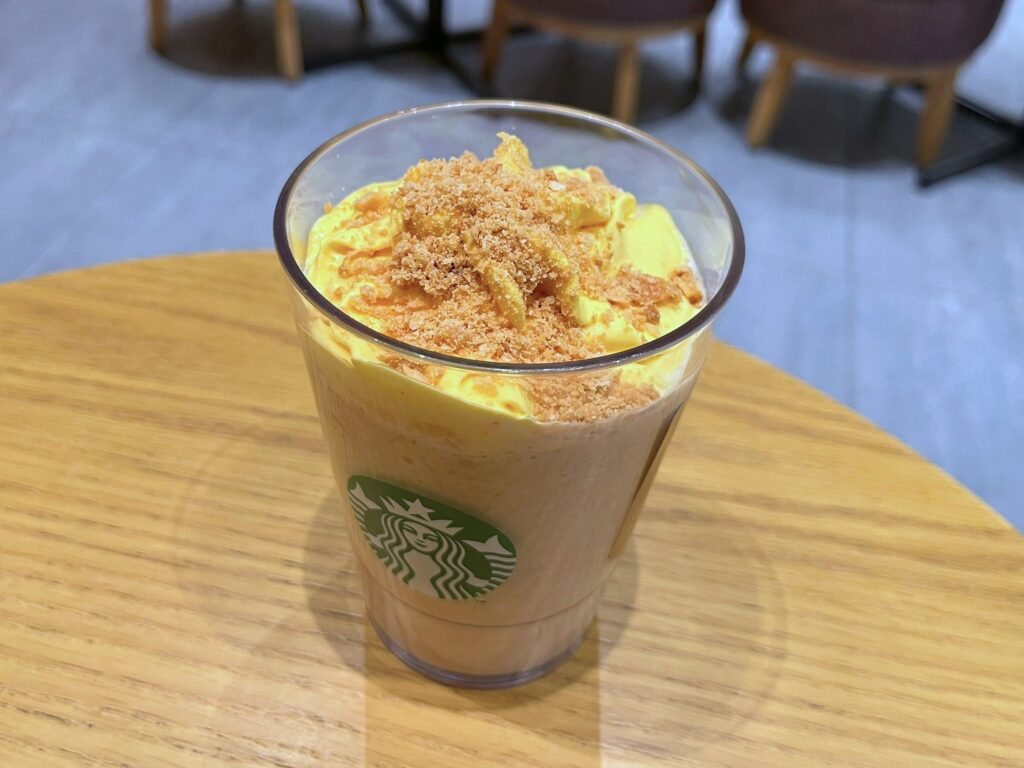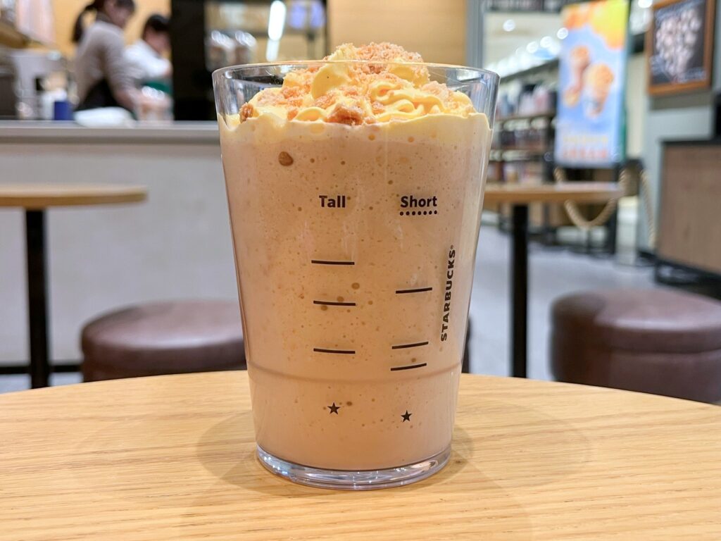 こちらが『シュークリーム フラペチーノ®』。Tallサイズのみで、テイクアウトは税込687円、イートインは税込700円となっています。