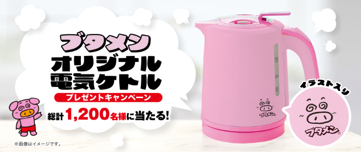【ブタメン】ブタメン専用!?オリジナル電気ケトルが総計1,200名に当たる