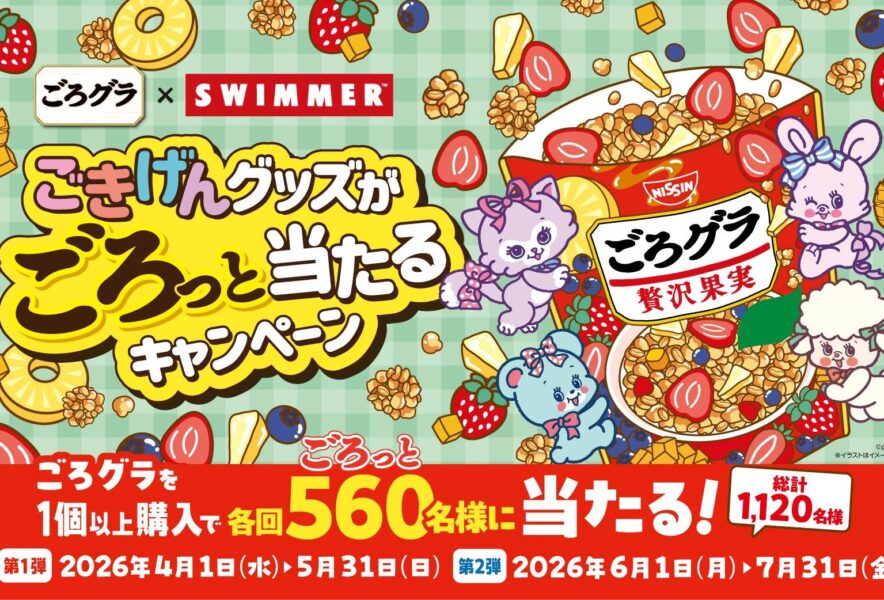 「ごろグラ」シリーズは、2014年の発売以来、こだわりの具材や豊富なバリエーションで多くの人に愛されてきました。2026年3月には、具材の魅力が伝わる新しいパッケージにリニューアルしています。そんな「ごろグラ」と、見ているだけで気分が明るくなる雑貨ブランド「SWIMMER」がコラボ。朝の時間を楽しくしてくれる、オリジナルグッズが当たる<ごきげんグッズがごろっと当たるキャンペーン>を実施中です。