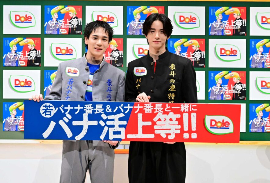 「Doleバナ活サポーター バナナ番長」の佐藤景瑚(JO1)、今回から強力なライバルとして参戦する豆原一成(JO1)が都内で行われたPRイベントに登場した。