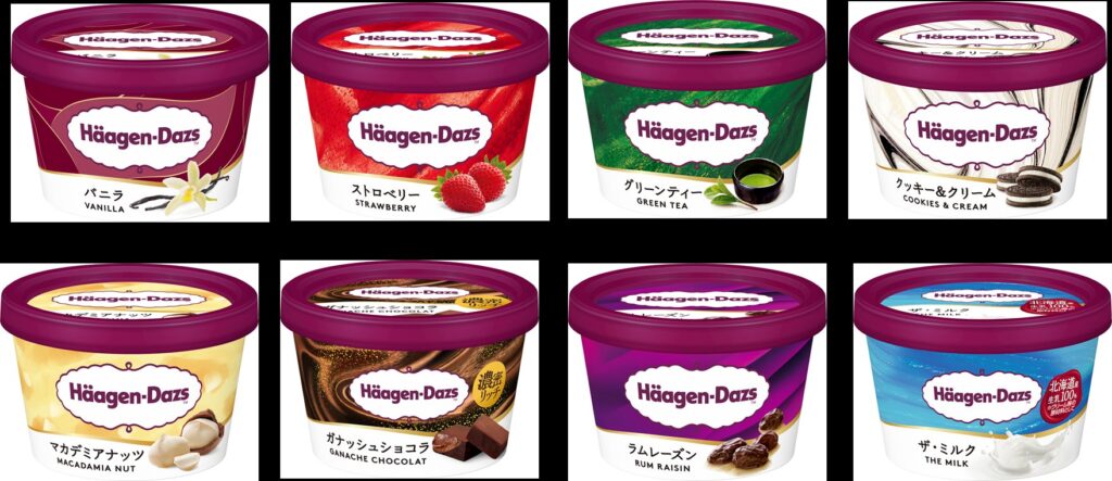 今回は、それぞれのフレーバーの魅力がひと目で伝わるようなデザインに進化。色使いもあえて抑えることで、ハーゲンダッツらしい上質感やおいしさが、よりダイレクトに感じられる仕上がりになっています。