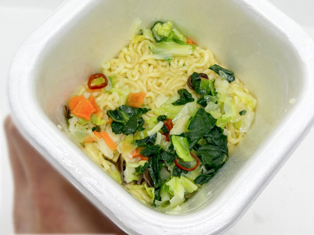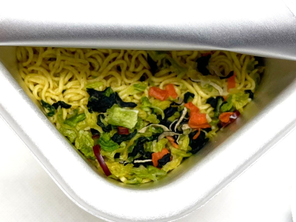 麺の上には、フリーズドライの野菜がたっぷり。