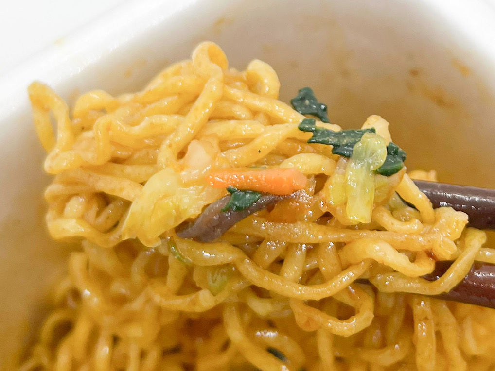 麺は歯切れのよいシコシコの食感。縮れているのでタレやスパイスがよく絡みます。