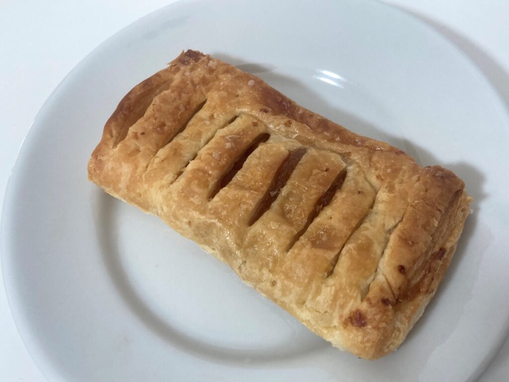 それではいただきます。サクサクふわふわの生地とジューシーなりんごの果肉は相性バツグンで、格別の美味しさ!パイ生地には発酵バターが使用されており、コクと優しい甘さを楽しむことができます。程よいしっとり感もあって崩れにくく、紙袋に入れたまま片手で食べやすいのが嬉しいポイント。