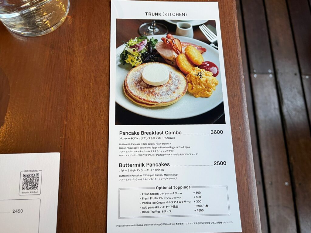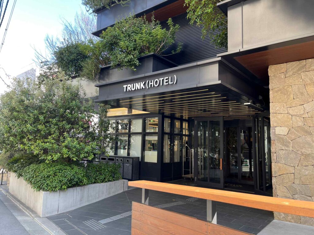 ホテル入り口の横を通って奥に向かうと、「TRUNK(KITCHEN)」の看板が見えてきます。