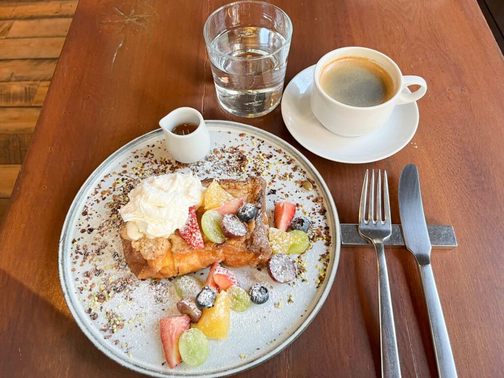アーモンドバターによるナッツのコクもフレンチトーストと相性バツグン。フルーツやホイップと合わせても、いろいろな味わいを楽しめました。