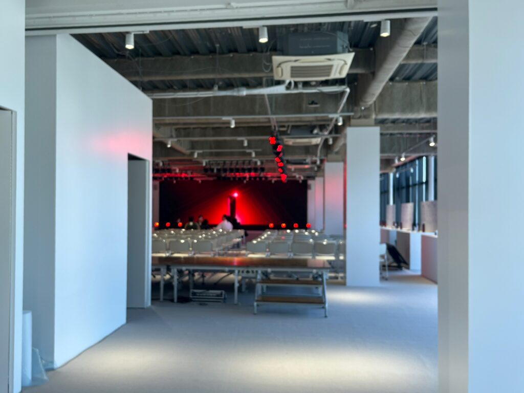 2階の別スペースでは、後日開催されるトークセッションなどのステージも用意されていました。