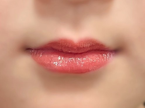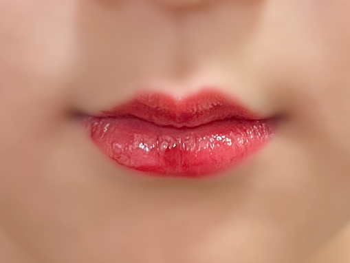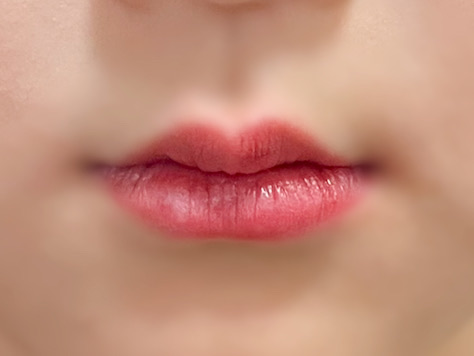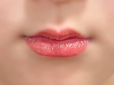 ご飯を食べたり飲み物を飲んだりしてもこの密着力。2時間ほど経っても、唇によくなじんでいて健康的な血色感をキープしています。