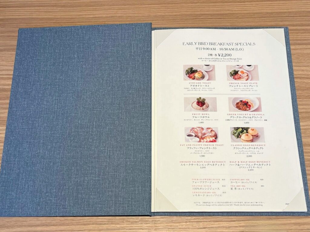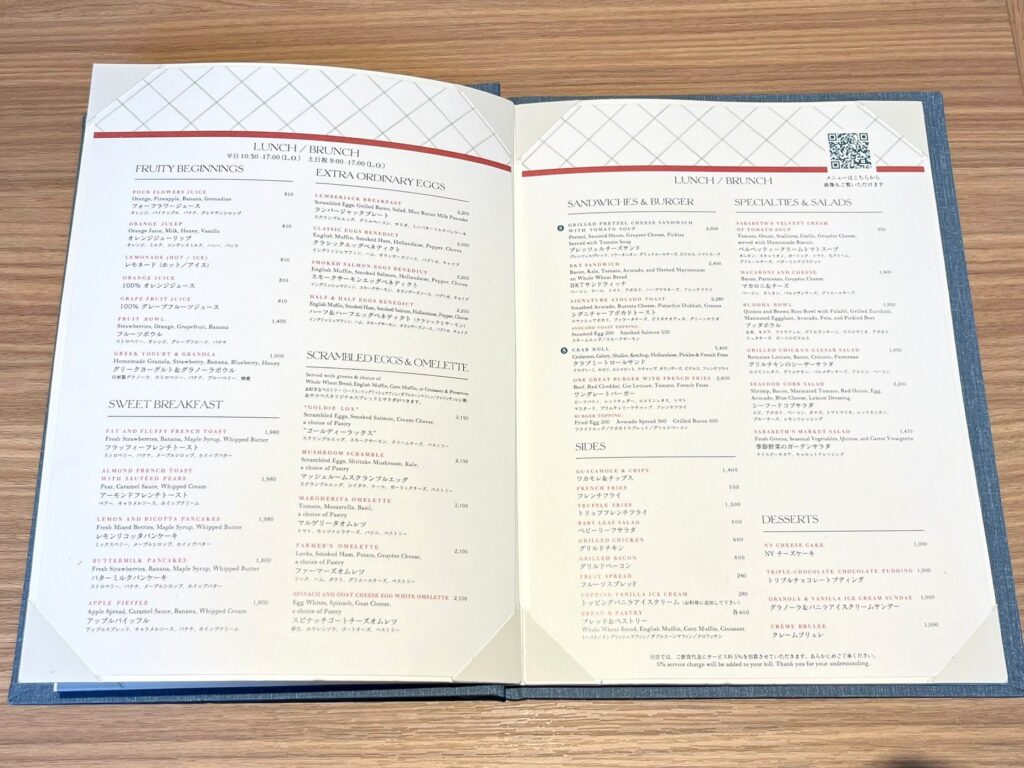 メニューには、フレンチトーストプレートなどの魅力的な朝食メニューや、興味を引かれるドリンクが並びますが、お目当ての限定メニューは“LUNCH/BRUNCH”に書かれています。