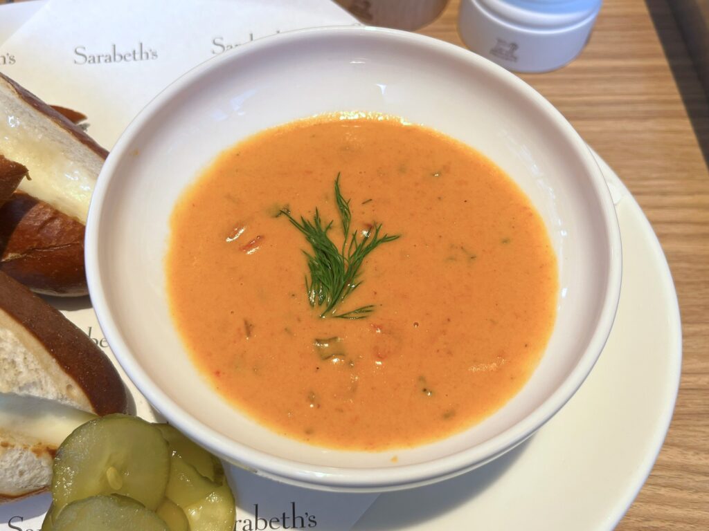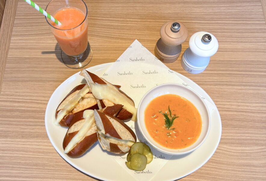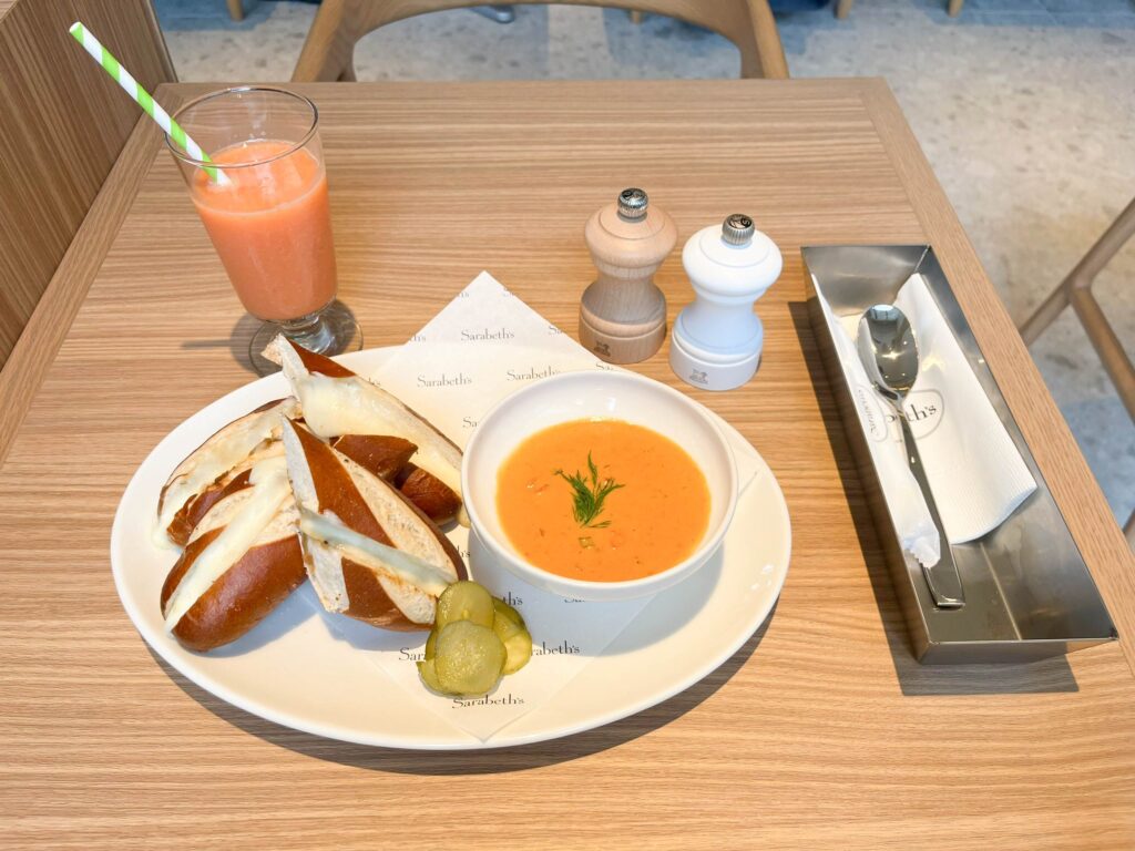 プレッツェルチーズサンドはなかなかのボリュームですが、美味しさのあまり、あっという間に完食してしまいました。サンドだけでなく、スープもジュースも素材を大切にしていることが食べた瞬間から伝わってくる、そんな味わいでした。