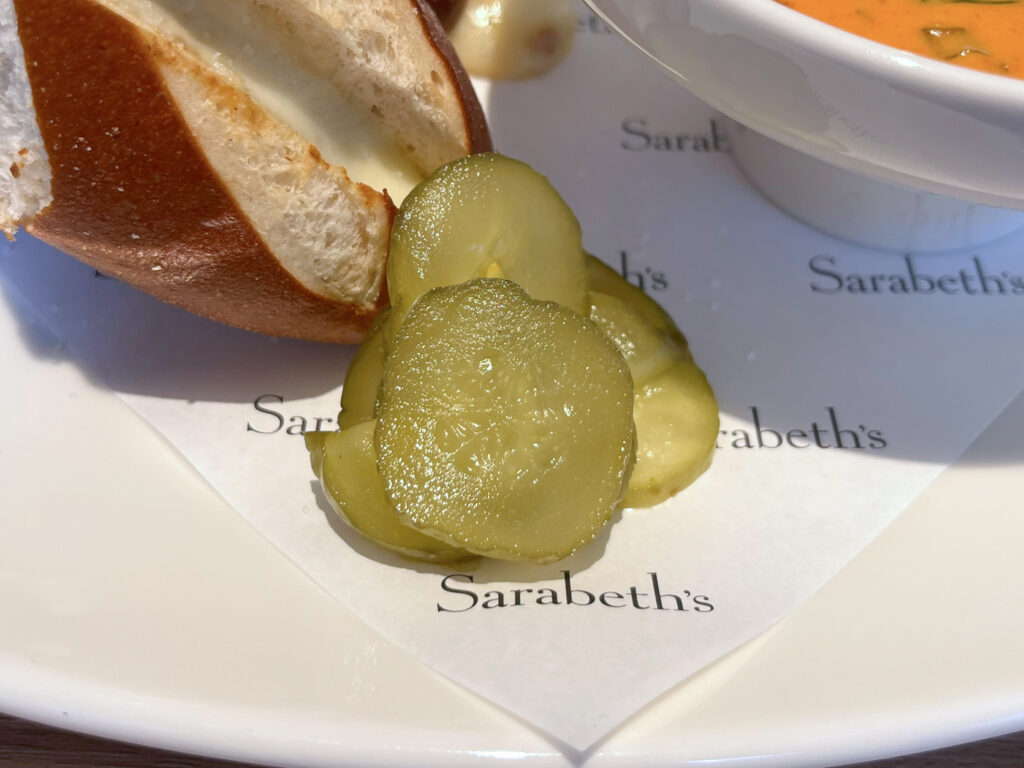 添えられたピクルスは、こってりした口をさっぱりとしてくれて、箸休みや口直しにピッタリな酸味でした。