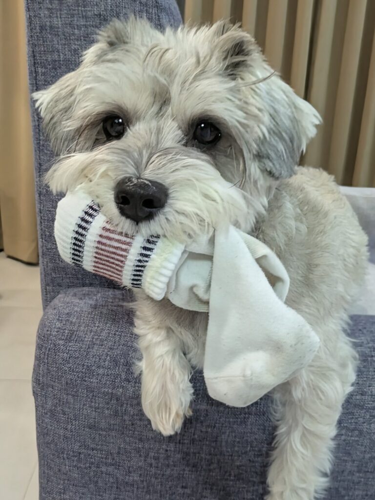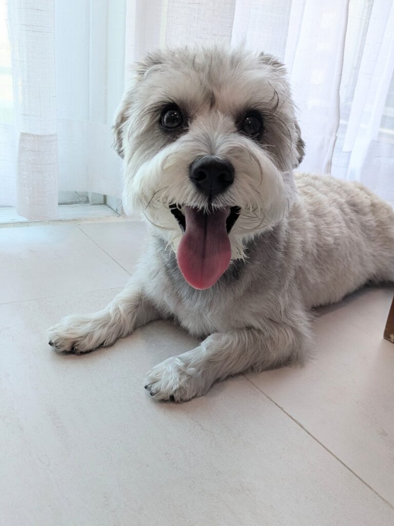 可愛い散歩回避術を見せたワンちゃんは、ミニチュアシュナウザーとマルチーズのMIX“ペレ”くん。
