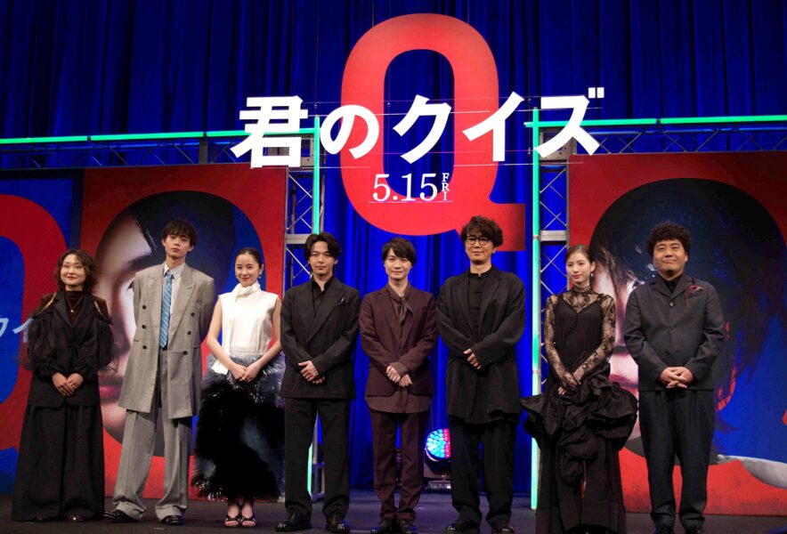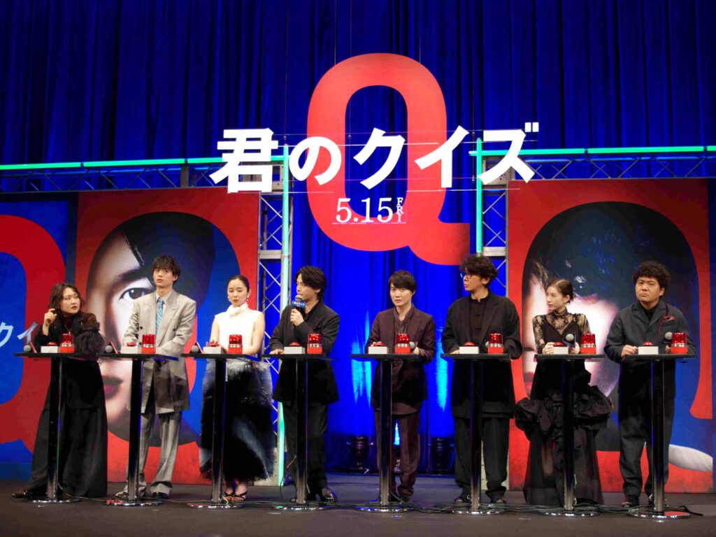 2023年本屋大賞ノミネート&第76回日本推理作家協会賞受賞と文学界だけでなく、作家・伊坂幸太郎をはじめとする各界のトップクリエイターにも衝撃を与えた小川哲の傑作ミステリーを実写映画化した『君のクイズ』(5月15日公開)。4月20日には、その完成披露試写会が東京・イイノホールにて実施され、主演の中村倫也、共演の神木隆之介、ユースケ・サンタマリア、堀田真由、水沢林太郎、福澤重文、吉住、白宮みずほが登壇した。