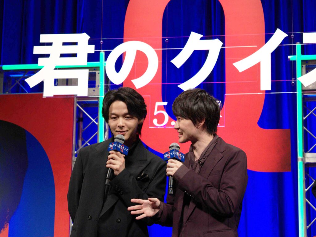“クイズプレイヤー”という役どころについては「事前に、QuizKnockさんの動画を見漁ったり、伊沢拓司さんの著書を読んだりしながら勉強して、積み重ねや戦略、個性など諸々で超人かのように見える人たちはできあがっているんだなと知った。より解像度が上がった状態で競技クイズの大会を見ていると、早押しボタンを押した後に答えるまでの2~3秒くらいに人間が出る。それを見ているのが僕はすごく好き。そのような細かいことを僕らは解答台の前でやっていますので、そのあたりも注目していただきたい」と、作品の見どころを交えながら紹介した。