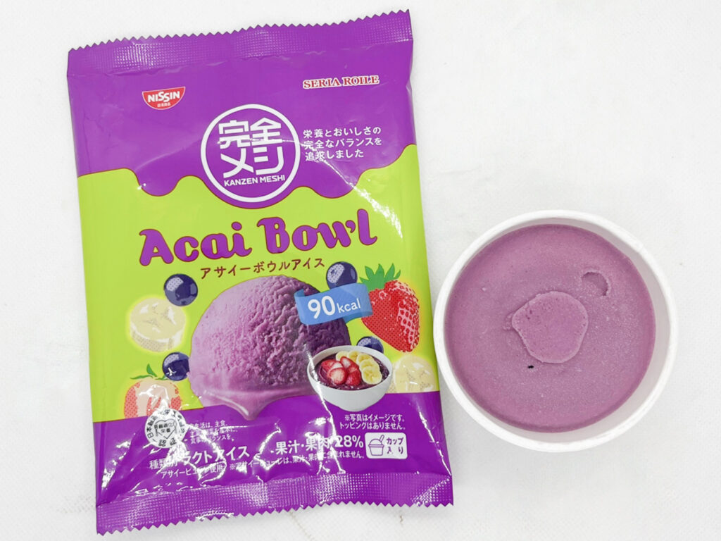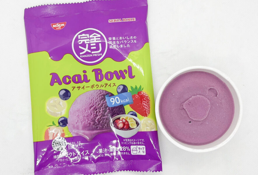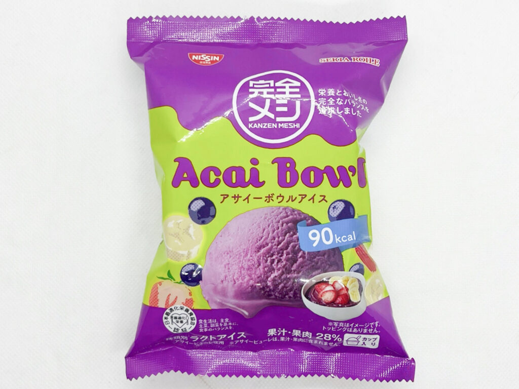 日清食品が手がける“完全メシ”シリーズから、4月21日(火)より栄養満点のアイス『完全メシ アサイーボウルアイス』が登場!東京都、神奈川県、長崎県のセブン-イレブン限定で販売されています。豆乳をベースに、アサイーピューレだけでなく、バナナピューレやイチゴ、ラズベリーの果汁を使ったフレッシュでなめらかな味わいなのだとか。さっそくゲットしてきたので紹介していきます。
