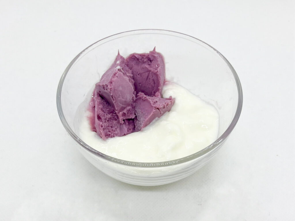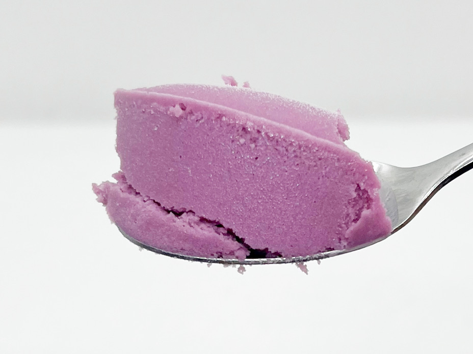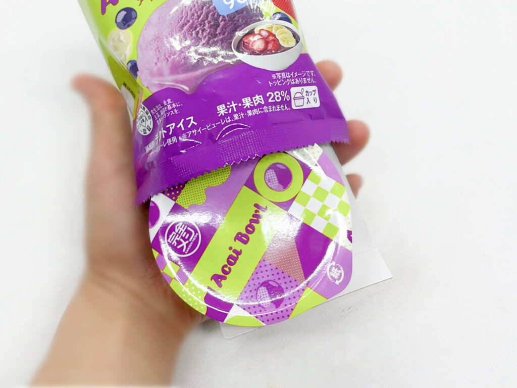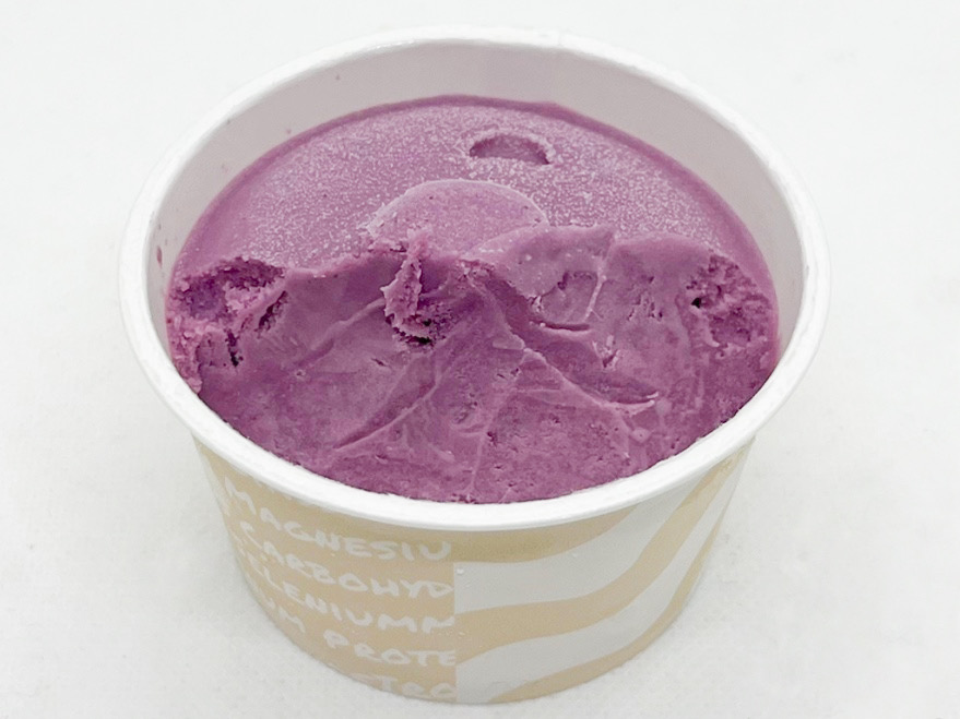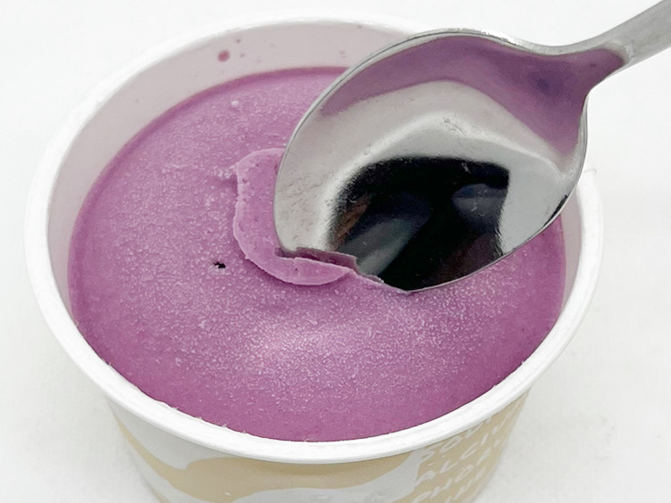 ではさっそく一口。アサイーやベリー類の甘酸っぱさ、みずみずしさが口いっぱいに広がります。スッとアイスが溶けた後にバナナならではのコクが口に残り、まるで贅沢にフルーツを盛りつけたアサイーボウルをいただいたような満足感。これは美味しい~!