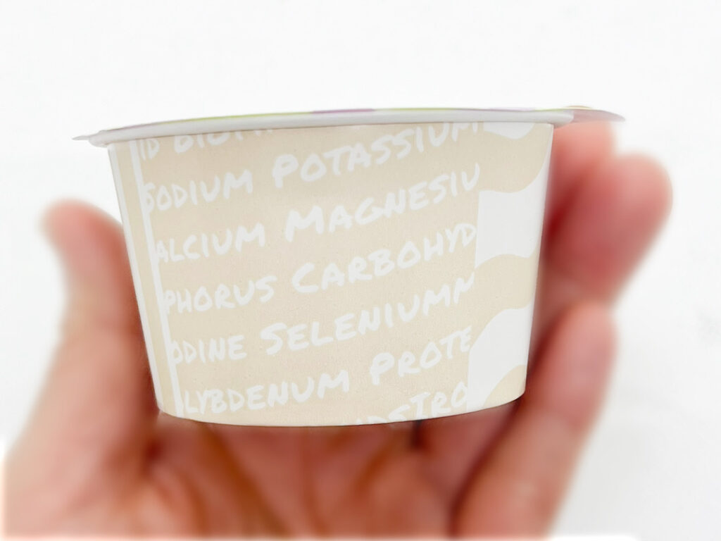 カップの側面には、骨の形成、筋肉の収縮などに欠かせない“マグネシウム”や免疫力向上などの働きをする“セレン(セレニウム)”などの栄養素がチャーミングな文字でデザインされています。